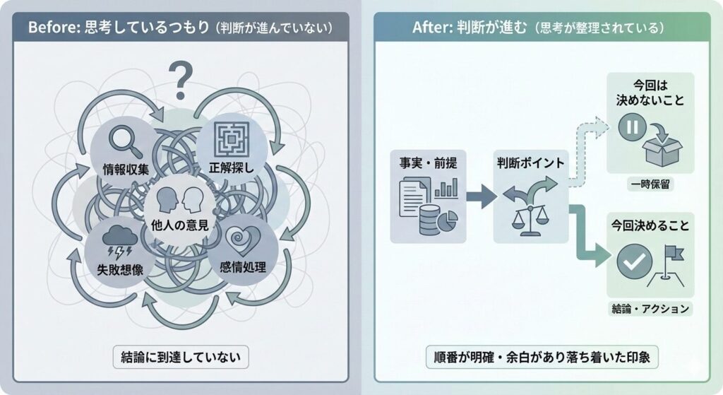決断できない原因は、能力や覚悟ではなく、判断の扱い方が整理されていないだけということがほとんどです。