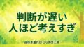 逆に、考え続ける人ほど「優秀だが遅い人」になります。