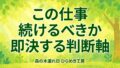 決断できない原因は、能力や覚悟ではなく、判断の扱い方が整理されていないだけということがほとんどです。もし今、「決めること自体に疲れている」なら、一度、判断を仕分けるところから始めてみてください。