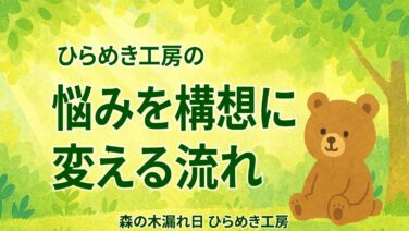 アイデア迷子・ビジネス迷子の方へ。森の木漏れ日 ひらめき工房が、ぼんやりした悩みを「構想」に変えていく具体的な流れを図解でやさしく解説。教室講師・ハンドメイド・クリエイター必読。