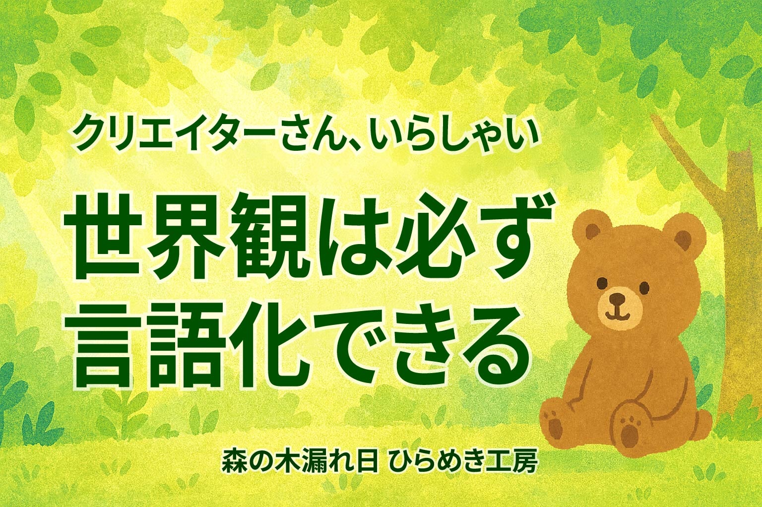 世界観がうまく言葉にできないクリエイターへ。教室講師・ハンドメイド作家・アーティスト・クリエイター向けに、世界観を言語化する具体的な手順と逆転の発想を構想戦略アドバイザーがやさしく解説します。