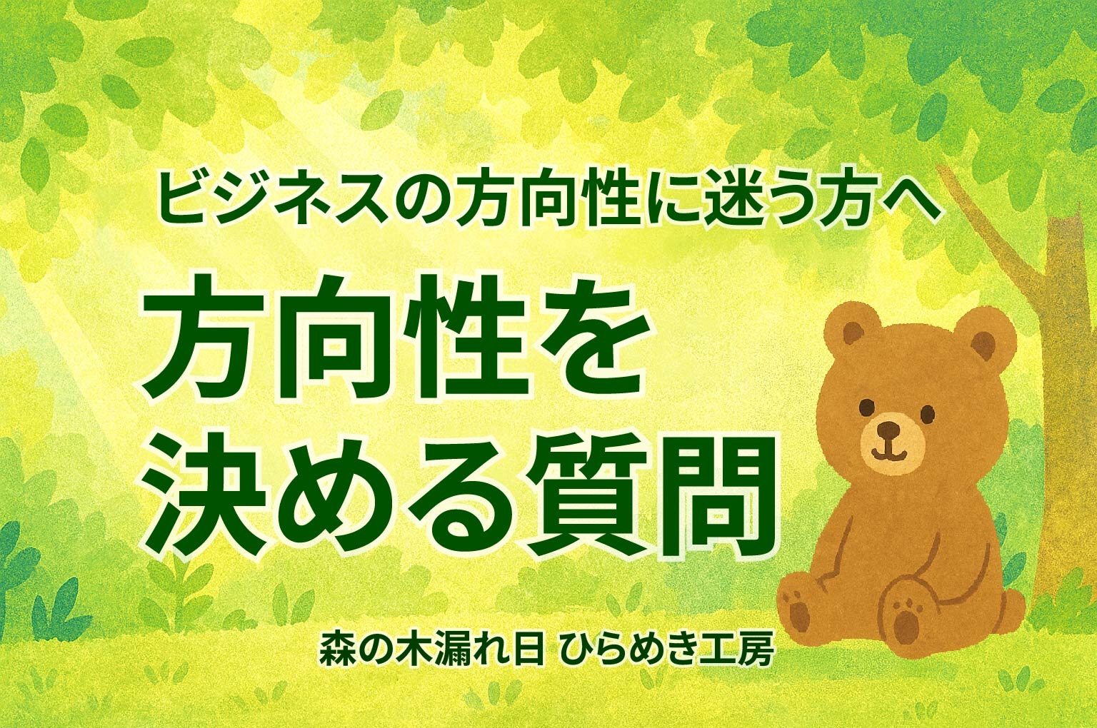 ビジネスの方向性が決まらない人へ。構想戦略アドバイザーが、迷子から抜け出すために「最初に考えるべきたった1つの質問」をやさしく解説。教室講師・ハンドメイド・クリエイター必読。